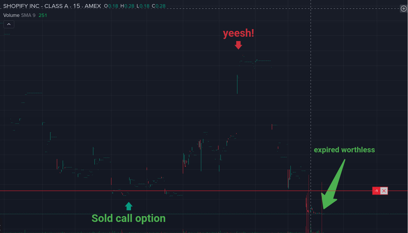 As such, the price of SHOP went below the strike price of the options and therefore the options expired worthless and I got to keep the premium from selling the option.